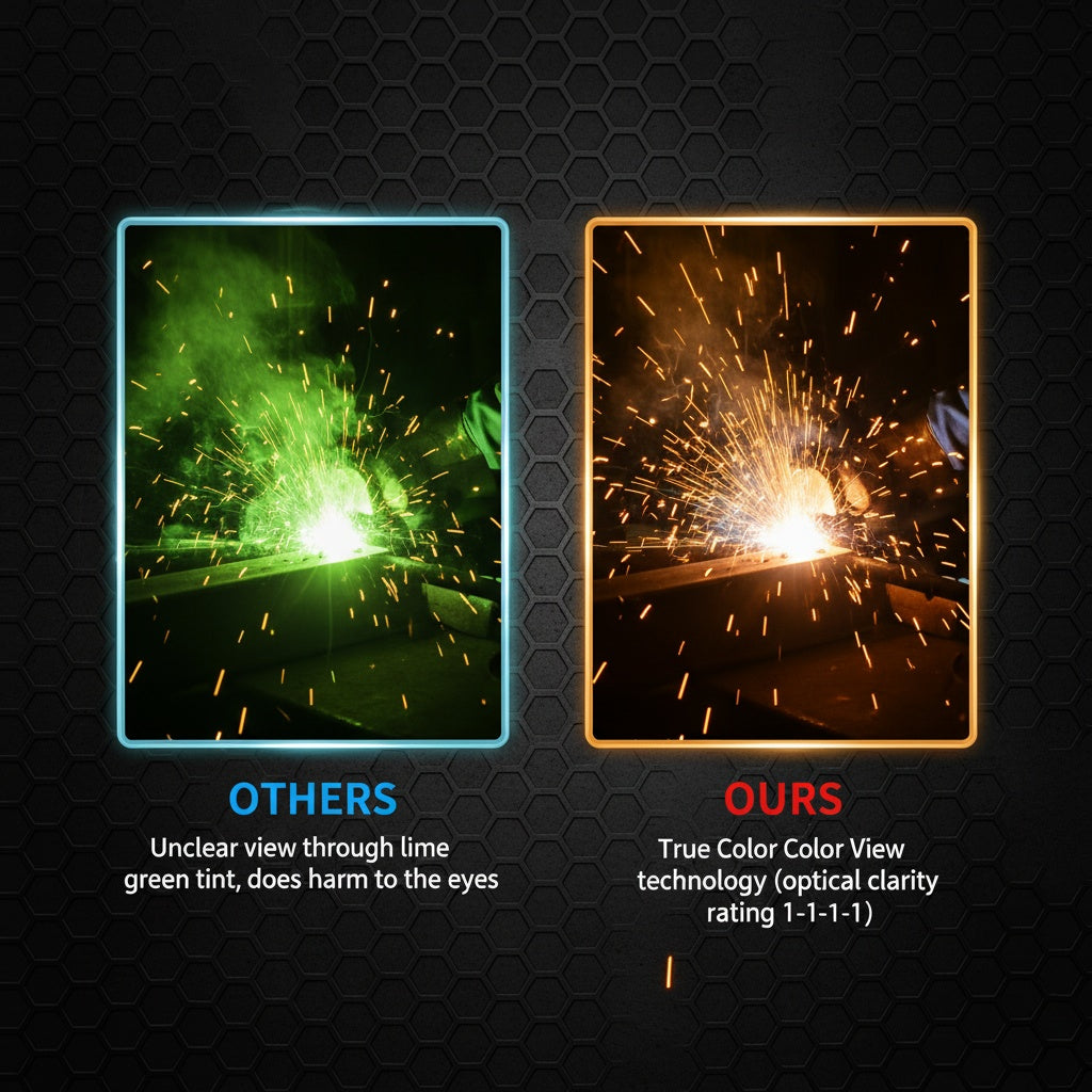 True Color 1/1/1/1 Clarity with Large Viewing Area: Experience superior visibility with a wide 3.93" x 3.66" viewing window and true color display, delivering crystal-clear optics (DIN 1/1/1/1) for improved precision in TIG, MIG, Stick (MMA), cutting, and grinding applications.